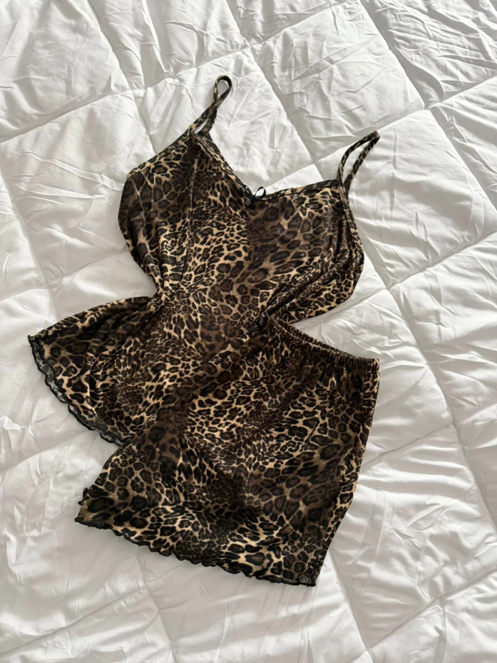 Descubrí nuestro conjunto de pijama animal print, diseñado para quienes buscan comodidad sin renunciar al estilo. Este conjunto combina una camiseta y pantalones cortos confeccionados en telas suaves y transpirables, ideales para descansar durante las noches o relajarte en casa. Su estampado animal print aporta un toque moderno y elegante, mientras que el diseño garantiza libertad de movimiento y confort. Elegí un pijama que refleje tu personalidad y te acompañe en cada momento de descanso.